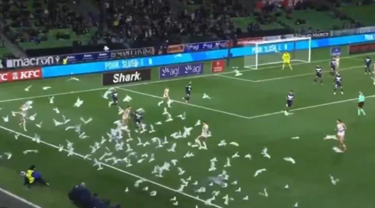 Dozens of seagulls invade Australian League game.